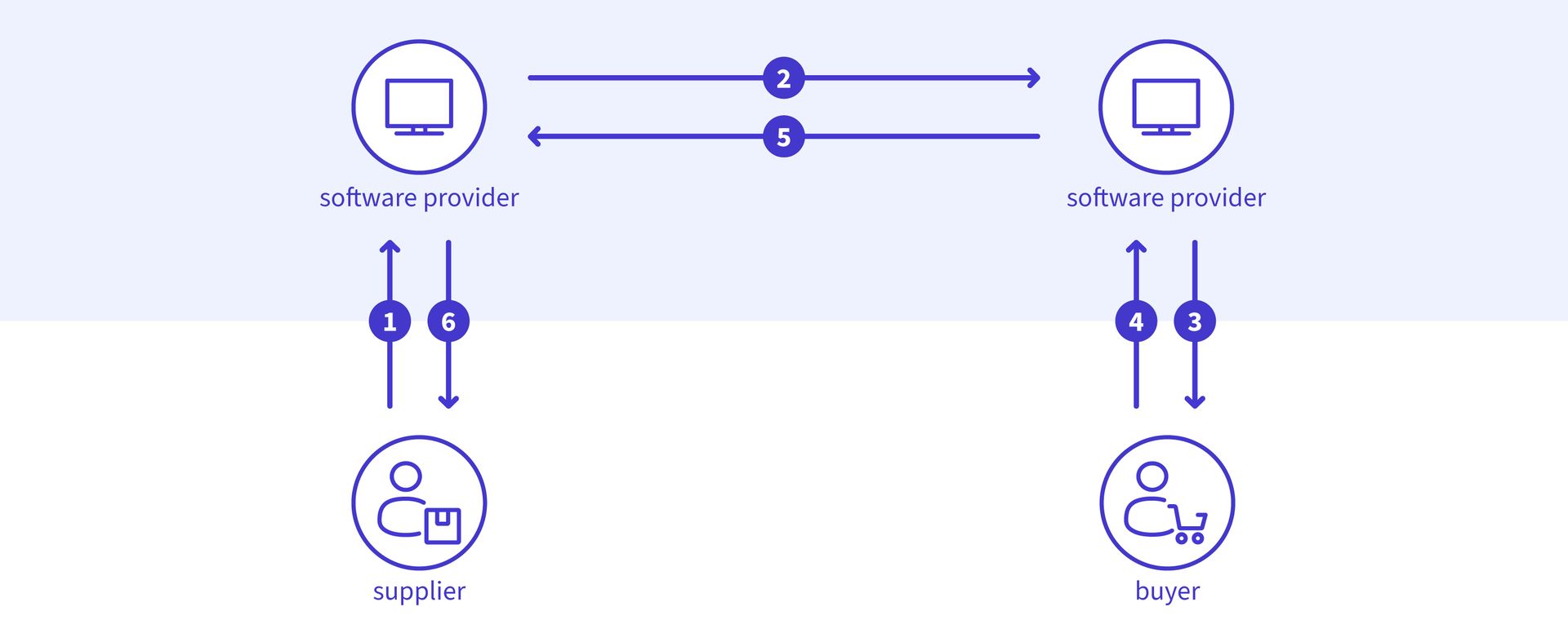 2. Automation & exchange: The documents are sent electronically via structured formats (like Peppol BIS) between the trading partners' service providers. The businesses use their chosen provider to automate their full supply chain document process (not just the invoice).