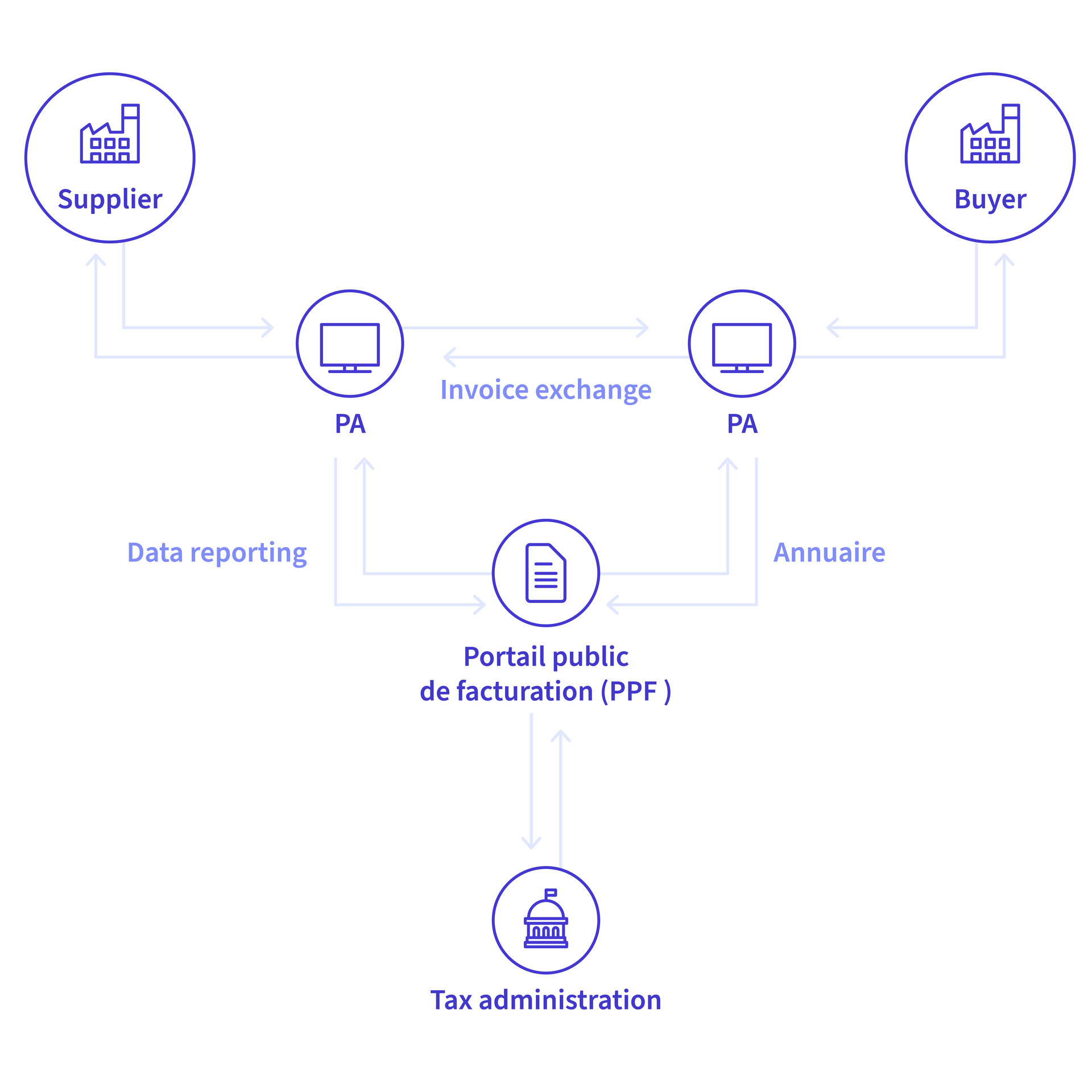 • Portail Public de Facturation (PPF) koordiniert das Routing, führt das zentrale Verzeichnis und stellt sicher, dass die DGFiP die erforderlichen Daten erhält.